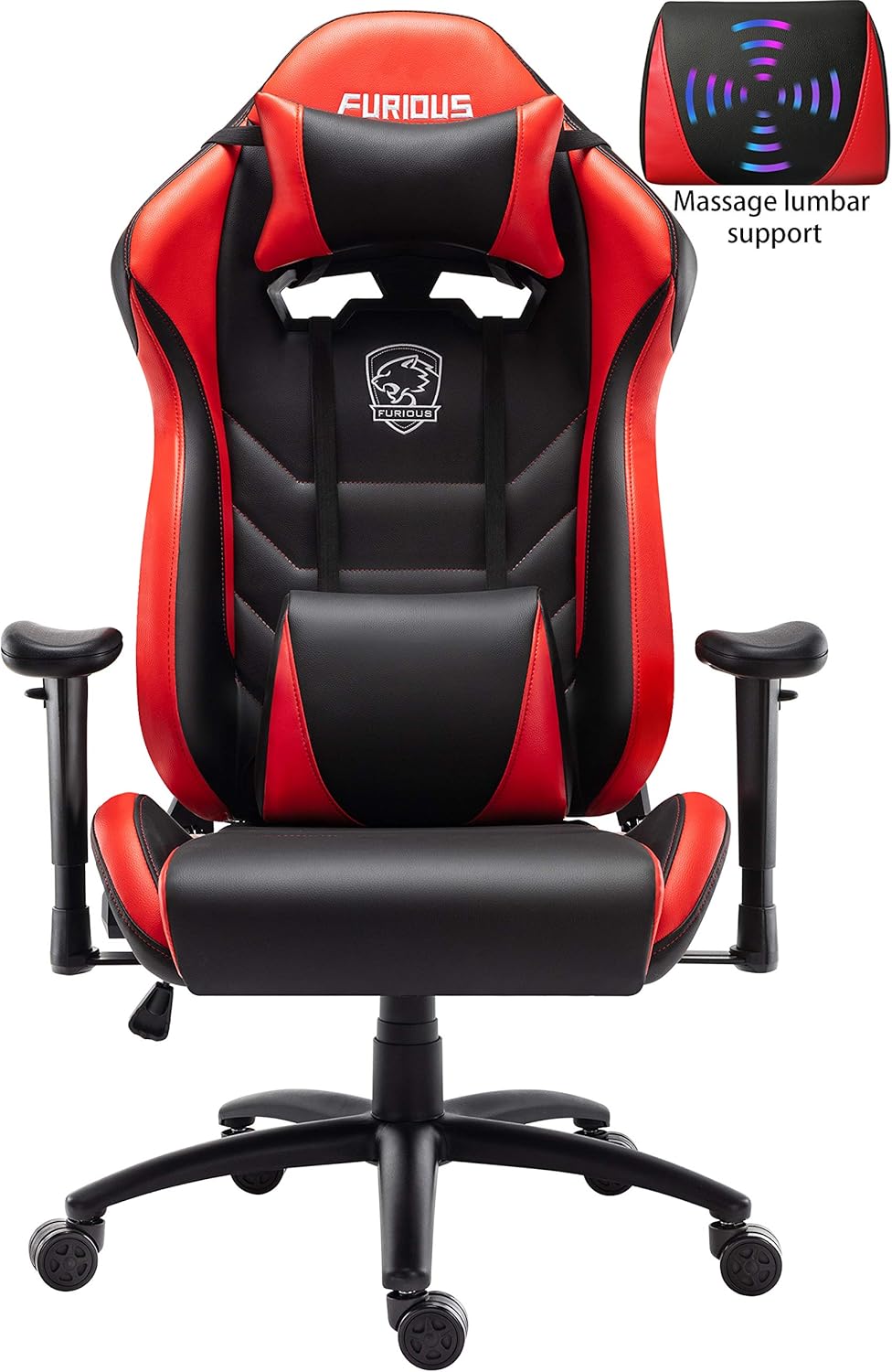 Amazon Com Furious Gaming Chair Racing Style High Back Pu Leather Office Chair Computer Game Gamer Chairs Executive Ergonomic Style Swivel Chair With Headrest Lumbar Support Red Kitchen Dining