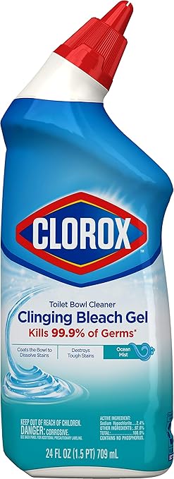 Get Clorox Toilet Bowl Cleaner Clinging Bleach Gel Target US. The only toilet bowl cleaner with clorox™ bleach, in a uniquely angled nozzle that let's you easily target hard to reach this powerful gel cleaner clings to your toilet bowl while it destroys tough stains, disinfects and eliminates odors with a fresh ocean mist scent. Clorox toilet bowl cleaner, clinging bleach gel, a disinfecting gel that clings to your toilet bowls surface, delivering the trusted clorox clean to all areas and leaves a cool wave scent.
